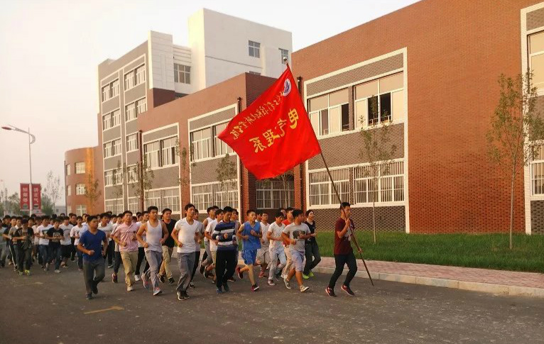 每天清晨,各班级的学生在本系部学生会的组织下,排着整齐的队伍,在指定的线路上完成各自的晨跑任务。晨跑结束后,同学们精神抖擞地开始了新一天的学习生活。