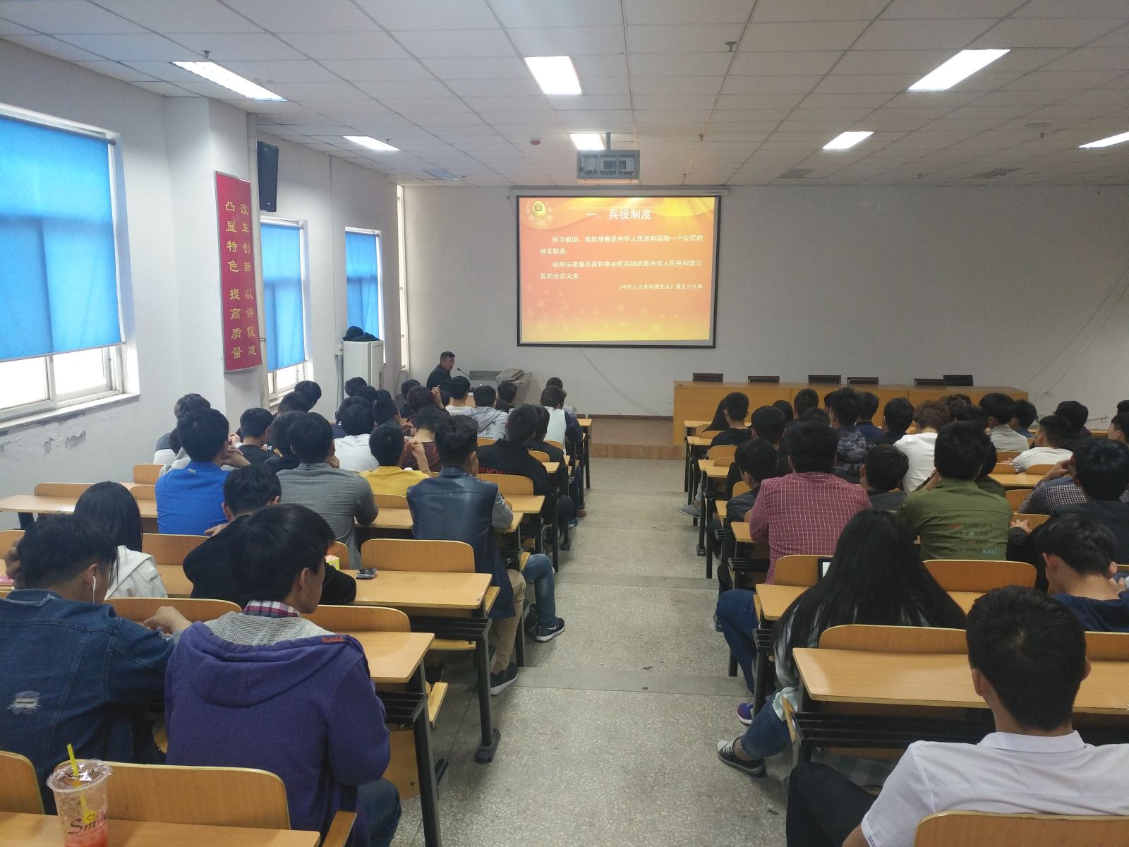为使我院大学生能够更好的了解兵役登记和报名相关政策,2017年4月25日下午4点焦作市示范区武装部参谋贾鹏来我院对意向参军学生进行兵役政策解读与个人现场解答。我院武装部长王睿、副处长韩玮、征兵管理员黄振海以及各系辅导员参加会议。