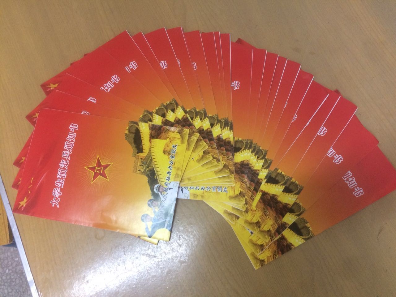 2017年6月21日我院武装部为15名初检合格学生发放《大学生预定兵通知书》。