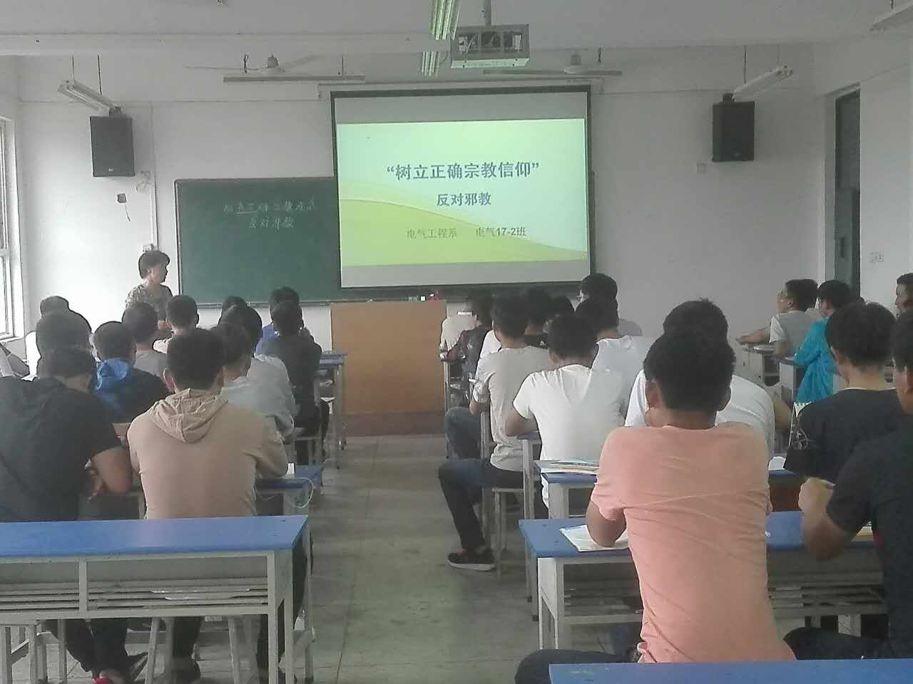 为进一步推进反对邪教的宣传教育工作,引导我院师生掌握反邪教知识,增强防范邪教的意识和能力,营造抵制邪教、崇尚科学的浓厚氛围。9月25-27日,院各系部以班级为单位开展“树立正确的宗教观念、反对邪教”的主题班会。