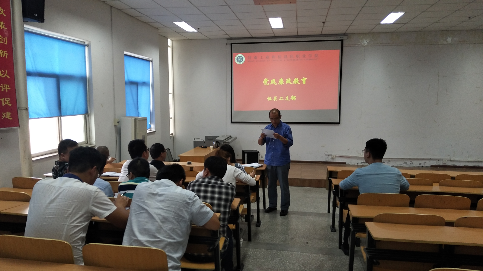 9月21日下午,机关二支部全体党员在学院第四会议室进行了党风廉政教育警示学习,会上,支部书记王永强同志带领全体同志学习了廉政教育文件,并就中秋、国庆双节期间廉政过节强调了纪律和提了要求。最后,全体党员在《机关二支部2018年中秋、国庆期间廉洁自律过节承诺书》签名做了承诺。