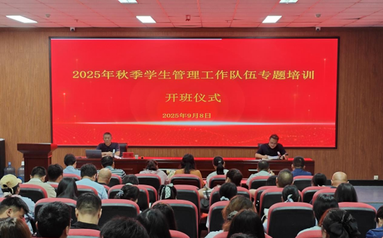 为进一步加强学生管理工作队伍建设,提升队伍思想政治素养与业务能力,推动学生工作高质量发展,9 月 8 日上午,我校 2025 年秋季学生管理工作队伍专题培训在第四会议室正式开班。各二级学院书记、学生管理副院长、学生工作办公室主任及全体辅导员、新生班主任全员参与,共同开启为期四天的能力提升之旅。