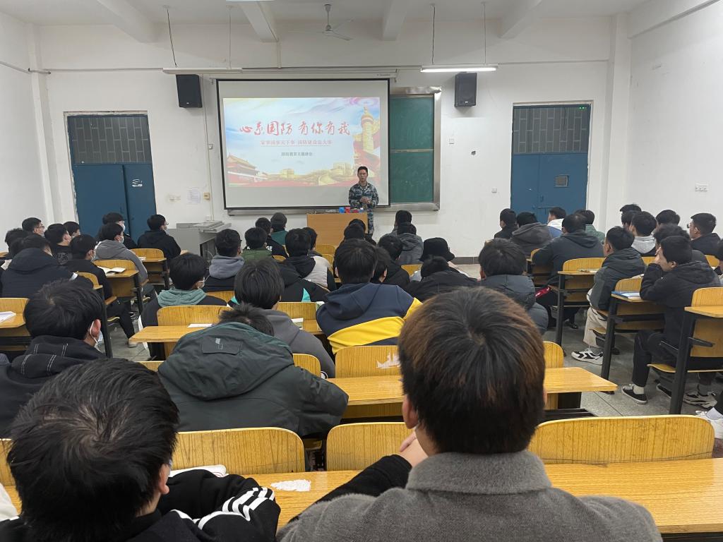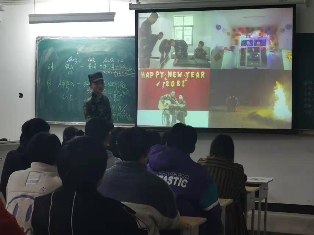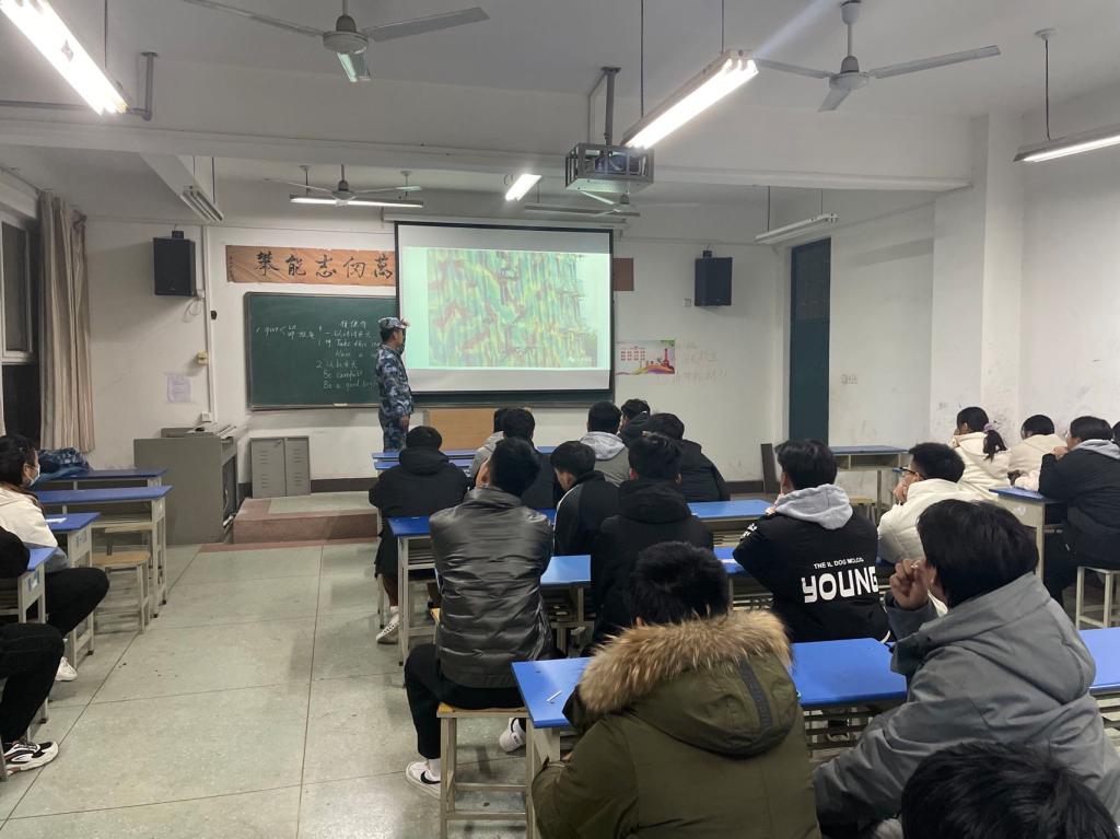 为进一步做好学院2022年征兵工作,充分发挥退伍复学学生的作用,自12月6日起,学院退伍军人服务社的退伍复学的学生利用晚自习进行为期两周的国防知识宣讲。退伍复学学生结合自身在部队服役实际,为在校大学生进行国防知识宣传,通过本次活动的开展,进一步增强了大学生热爱祖国、建设祖国、保卫祖国的意识,激发广大学生的爱国情感,增强了广大学生的国防意识。同时,以国防教育、爱国主义教育为引领,让广大学生深刻理解"国无防不立,民无兵不安"的重大意义,牢固树立"居安思危"的意识,激发了大学生征兵入伍的热情,为学院征兵工作打下良好基础。