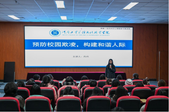 为了推进我校“博雅一站式社区”建设工作,加强学生对校园欺凌的认识和防范意识,更好地了解和辨别欺凌行为,提升法律观念和自我保护能力。2023年12月19日下午,我院组织130余名师生参加在第四会议室举办博雅一站式社区“预防校园欺凌,构建和谐人际”主题讲座,讲座由心理健康教研室教师高祎老师主讲。