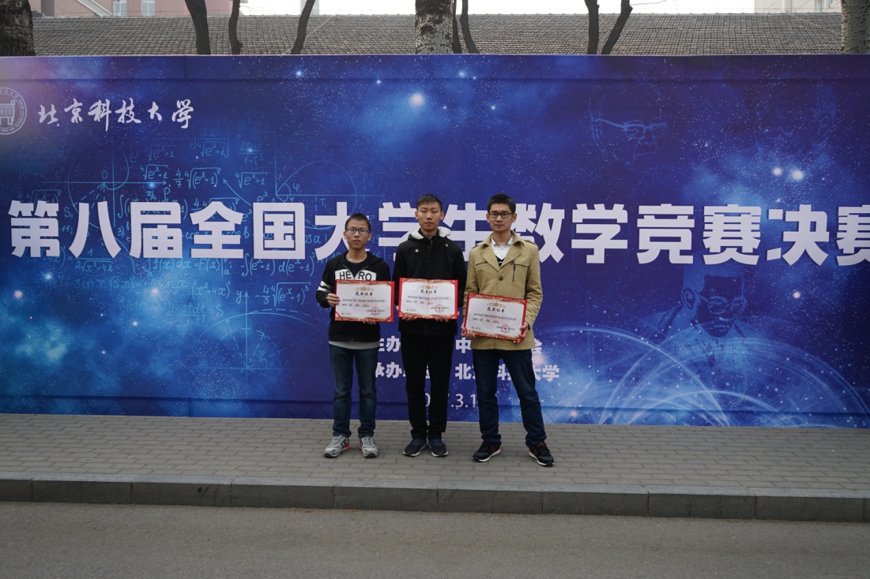 2017年3月18日,第八届全国大学生数学竞赛在北京科技大学进行决赛,次日上午成绩揭晓,并举行了总结颁奖大会,我校3名参赛学生全部获奖,其中通信工程学院张程同学、电子工程学院刘发强同学均荣获非数学专业类一等奖...