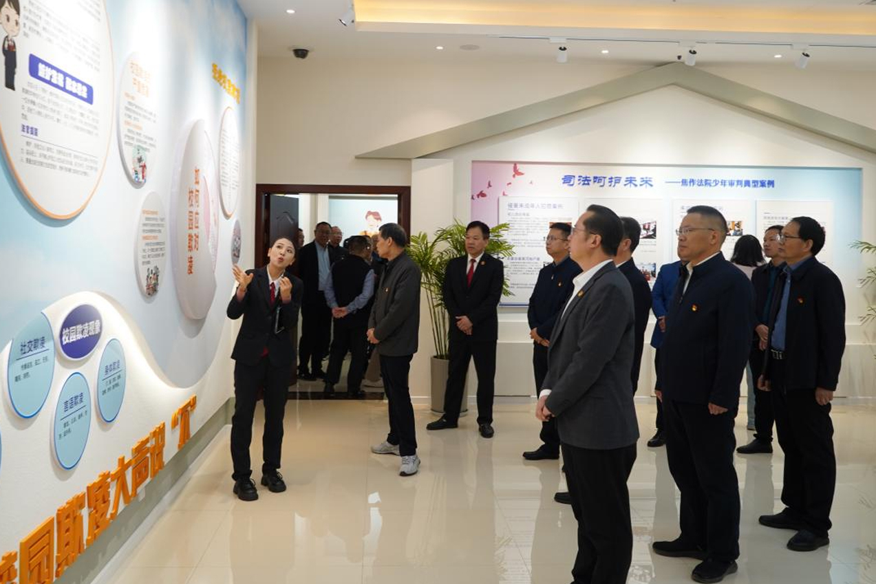 此次研学以“实地观摩+现场交流研讨”的方式进行。中心组成员聚焦习近平法治思想、党的建设等主题,沉浸式、体验式参观了宪法文化广场、“法护未来”青少年保护基地、党建文化长廊、荣誉室、图书室和法治文化馆,并在党员活动室举行重温入党誓词活动。通过边看边听、边学边议,党委理论学习中心组成员和法院的同志们一起领会习近平法治思想的内涵实质,探讨高质量党建引领高质量发展的重要意义和在本单位的实践途径,剖析违纪违法典型案例,达到了直抵心灵的廉政警示教育效果。