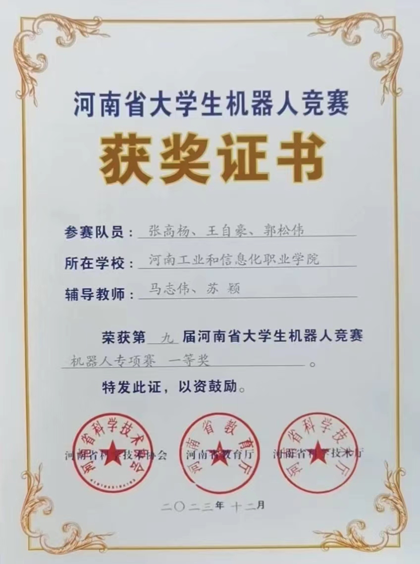 2023年岁末,由河南省科协、河南省教育厅、河南省科技厅联合主办,华北水利水电大学江淮校区承办的第九届河南省大学生机器人竞赛在信阳市罗山县开幕。来自全省69所高校的527支参赛队伍师生齐聚江淮校区,共享这一大学生科技创新盛事。我校苏仁教育学院代表队获机器人专项赛一等奖。这是对我校校企合作建设求真务实,双元育人理念的一次成功检验。