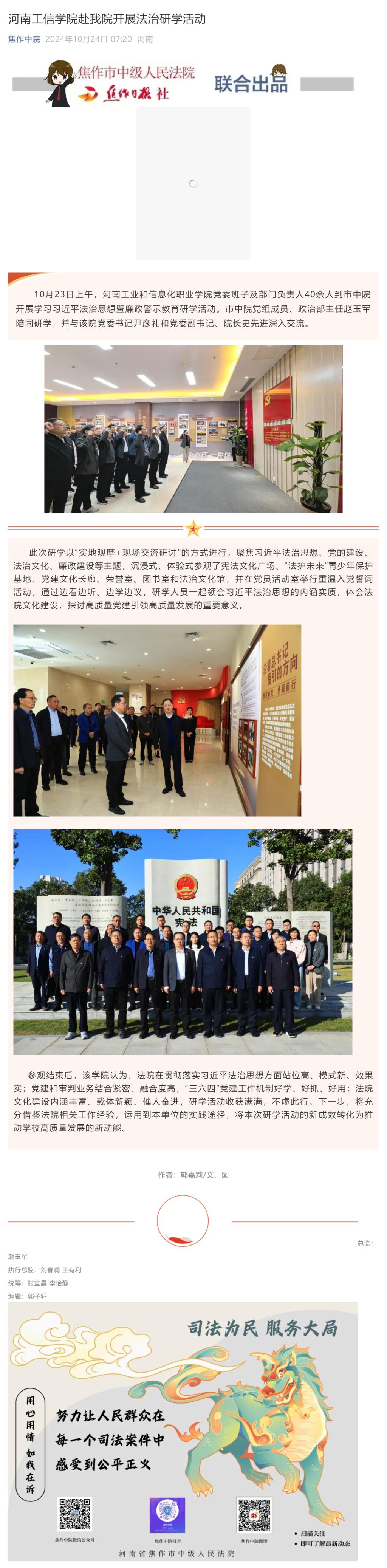 《焦作中院2024-10-24》报道我校赴中院开展法治研学活动