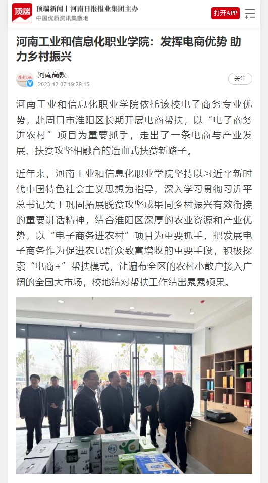 《顶端新闻2023-12-7》报道我校校地结对帮扶工作情况