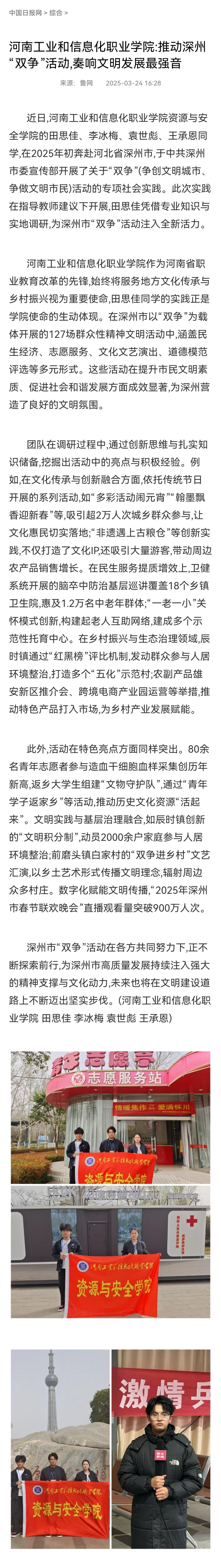 《中国日报网 2025-3-24》报道我校推动深州“双争”活动,奏响文明发展最强音