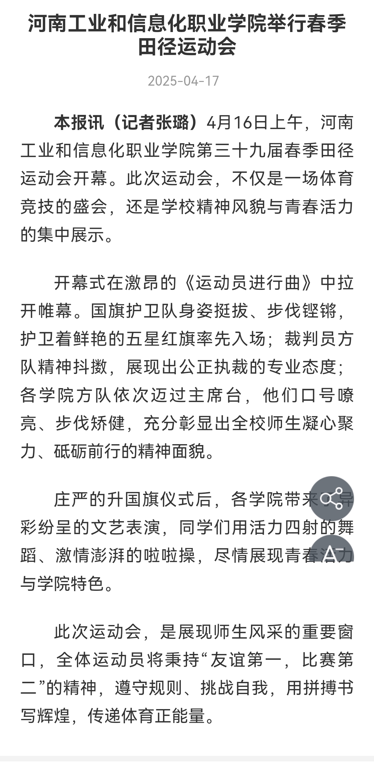 《焦作日报 2025-4-17》报道我校举行春季田径运动会