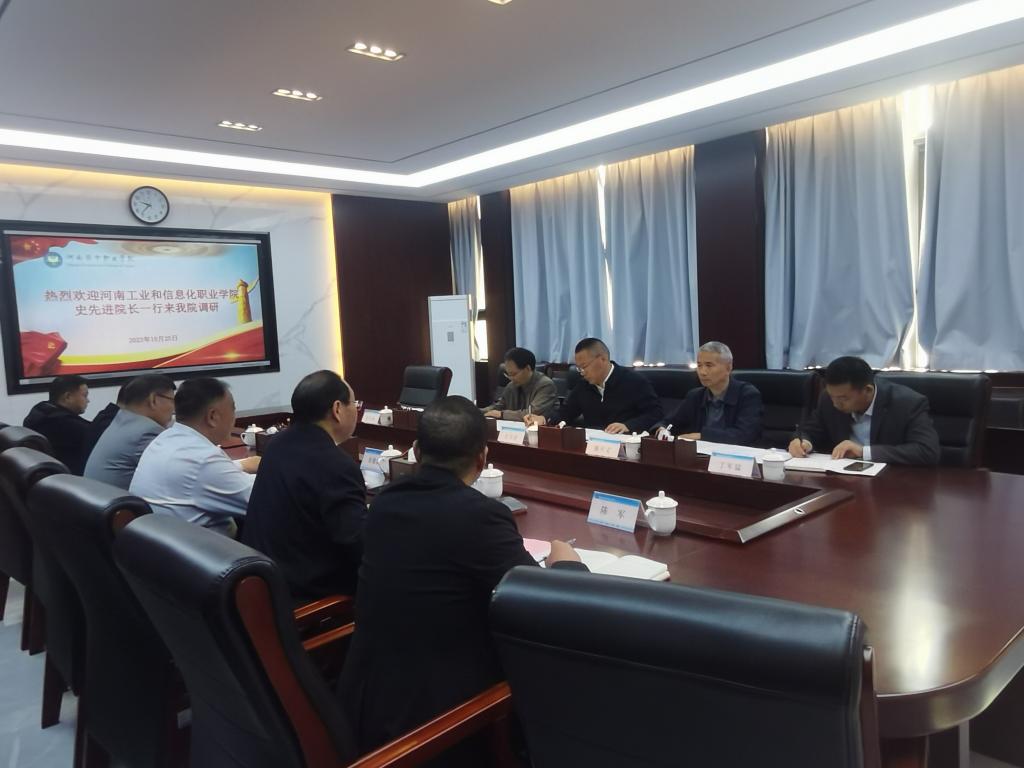 10月24日,院长史先进带领学校部分人员到我院实习实训教学基地洛阳鸿卓电子信息技术有限公司、洛阳通达电缆厂进行考察调研。院纪委书记盛兴文、党委委员魏道清及教务处、学生处等部门主要负责人参加。