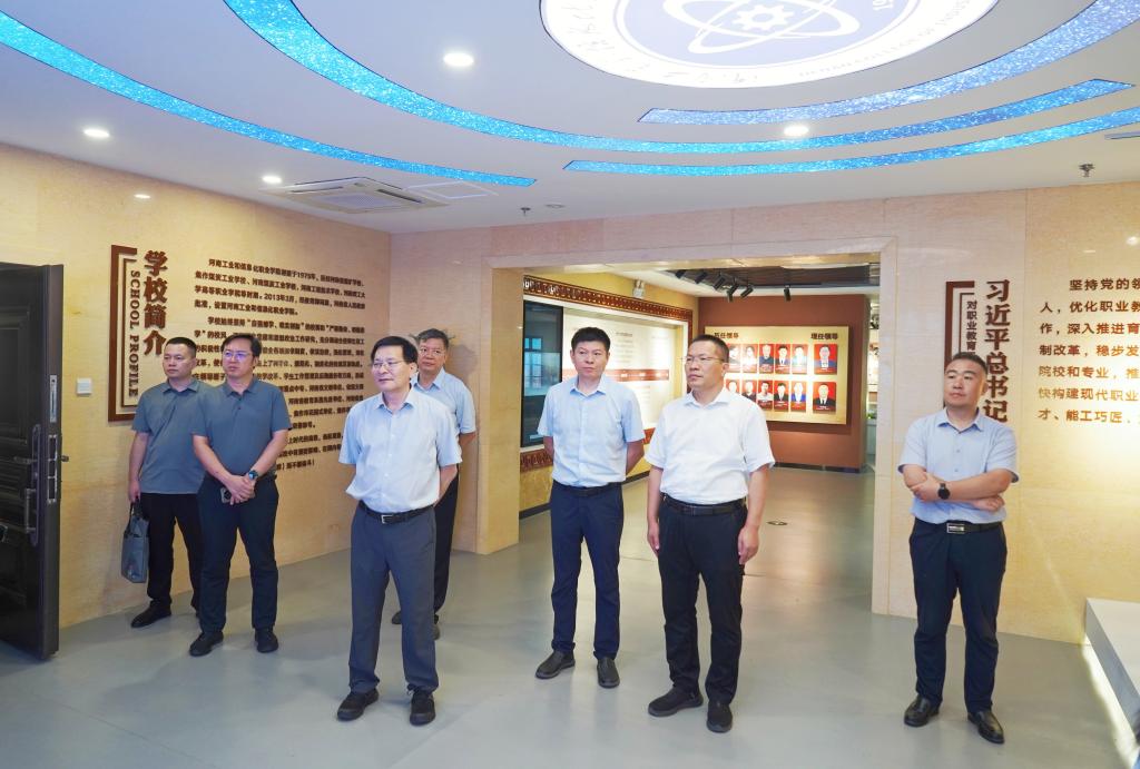 在校史馆,刘林亚一行先后观看了学校宣传片和校园沙盘模型,了解我校发展现状及前景,对我校的发展成就表示认可,对产教融合办学及校企合作育人表示肯定。希望我校围绕工业和信息化发展方向,继续深入企业开展调研,结合企业人才需求,发挥专业优势,深度开展合作,为国家培养更多的实用型技能型人才。