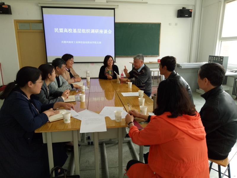 随后,郭卫民副主委一行与民盟河南工业和信息化职业学院支部盟员进行座谈。座谈会上,郭卫民介绍了本次民盟焦作市委组织成立调研小组对我市四个高校盟支部(基层委员会)开展专项调研活动的主要目的:听取高校基层组织在履职过程中的工作经验和亮点,了解在新形势下高校民盟基层工作存在的困难,以及进一步推进基层组织建设的意见建议。民盟河南工业和信息化职业学院支部主委高喜玲汇报了近几年来开展工作活动的情况,介绍了支部建设、组织活动、盟员履职、取得成绩等方面情况,分析了支部工作存在的问题,提出了今后开展工作的新设想。郭卫民对民盟河南工业和信息化职业学院支部取得的成绩表示肯定。