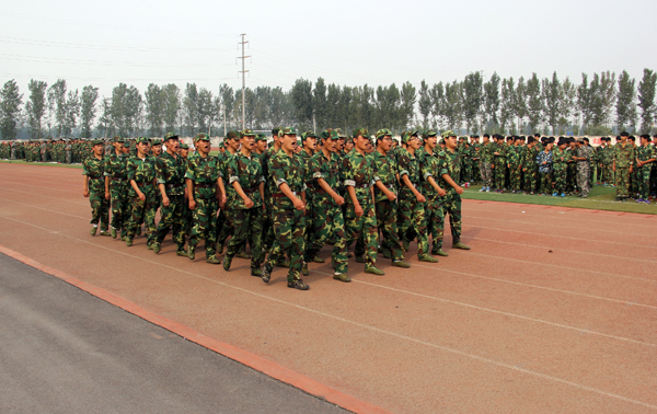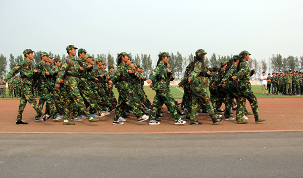 在总教官的指挥下,参加军训的学生分成12个方队,依次进行会操表演。“立正”、“跨立”、“齐步走”……整齐的步伐、划一的动作、嘹亮的口号充分展现了我院学子严明的组织纪律和昂扬的精神风貌,赢得了在场领导、教官和老师们的一致好评。
