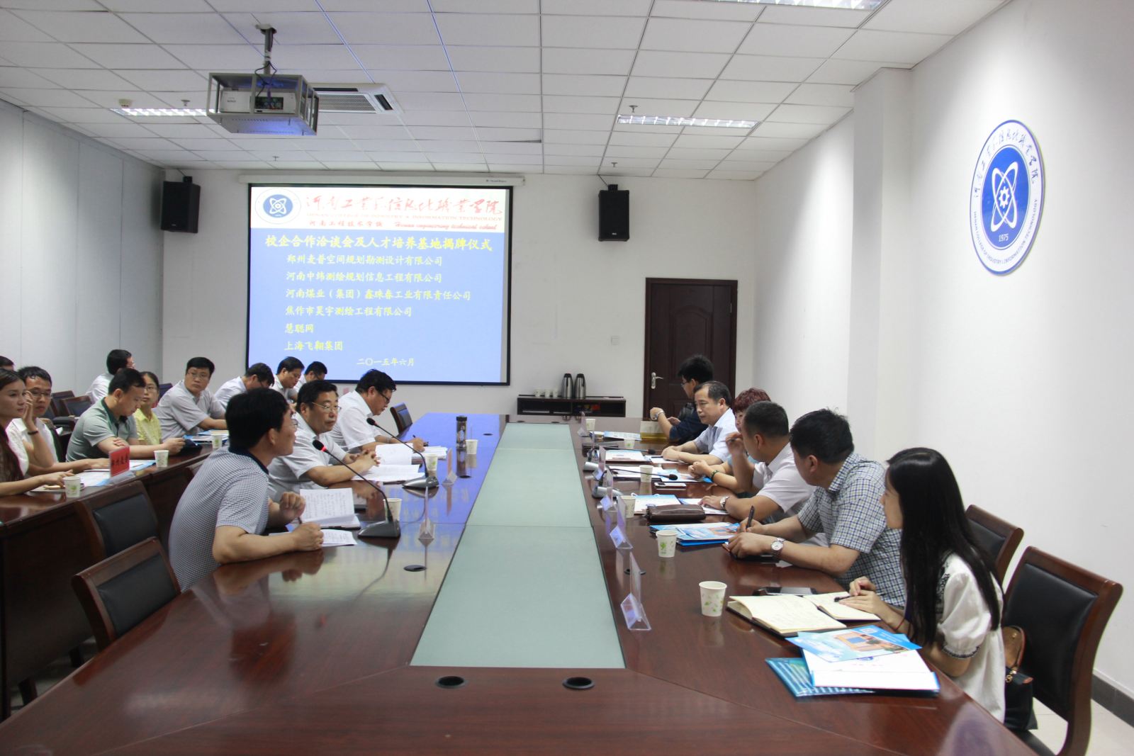 为进一步加强学院与企业的联系与沟通,增进双方友谊,以便更好地协同创新、共谋发展,6月4日上午,我院与郑州麦普空间规划勘察设计有限公司、河南省中纬测绘规划信息工程有限公司、河南煤业(集团)鑫珠春工业有限责任公司、焦作市昊宇测绘工程有限公司、慧聪网、飞翱集团等六家企业举行了校企合作洽谈会及人才培养基地揭牌仪式。企业相关领导与我院领导王海长、毋虎城、邱雨生出席会议,会议由邱雨生主持。
